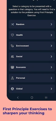 • First Principles Exercises: Strengthen your critical thinking with daily exercises designed to train your mind. Receive instant AI feedback on the effectiveness, creativity, and quality of your problem-solving approaches.