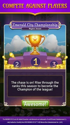 Match 3 down THE YELLOW BRICK ROAD™ in a magical puzzle adventure game featuring classic characters like DOROTHY™, the SCARECROW™, the TIN MAN™ and the COWARDLY LION™!