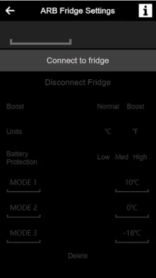 ARB Zero Fridge Connect can be used to monitor and control the ARB Zero Fridge/Freezers (Single and Dual zone). Available feature include: